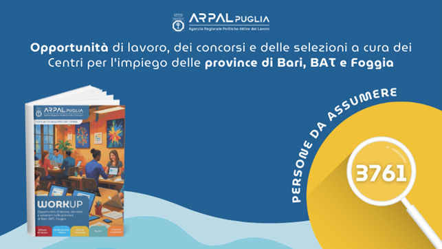 È possibile approfondire la conoscenza del mondo ARPAL Puglia e dei Centri per l’impiego seguendo la pagina Linkedin dedicata.